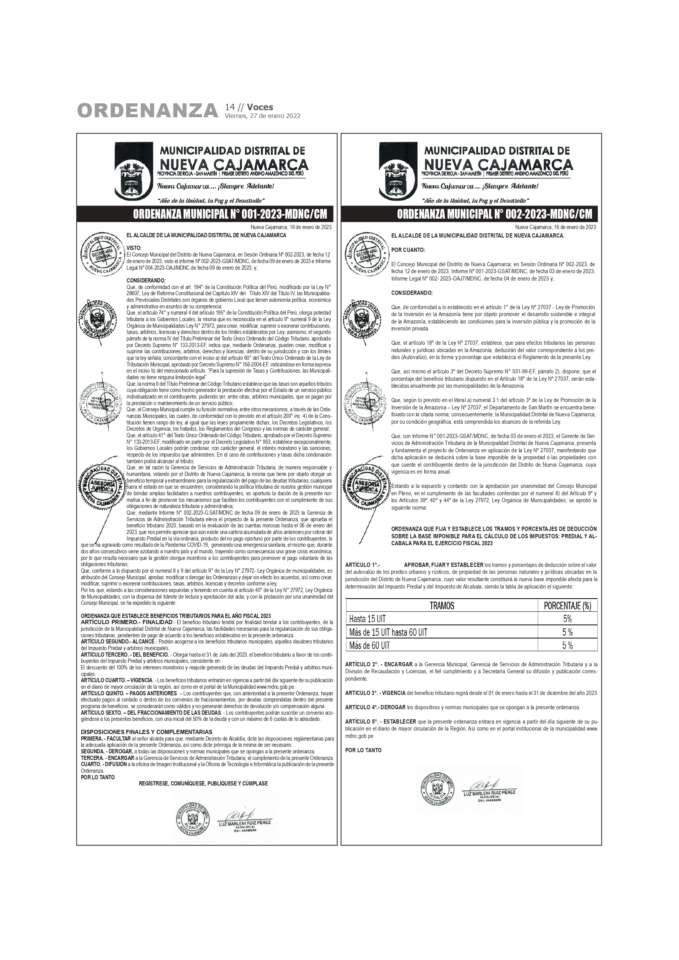• Actualidad, Ordenanza Municipal