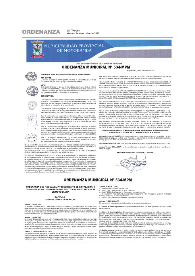 Municipalidad Provincial de Moyobamba: Ordenanza Municipal N° 534-MPM