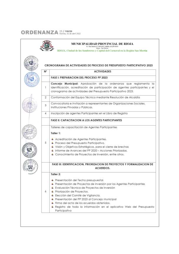 Municipalidad Provincial de Rioja: Ordenanza Municipal N°005-2022-CM/MPR