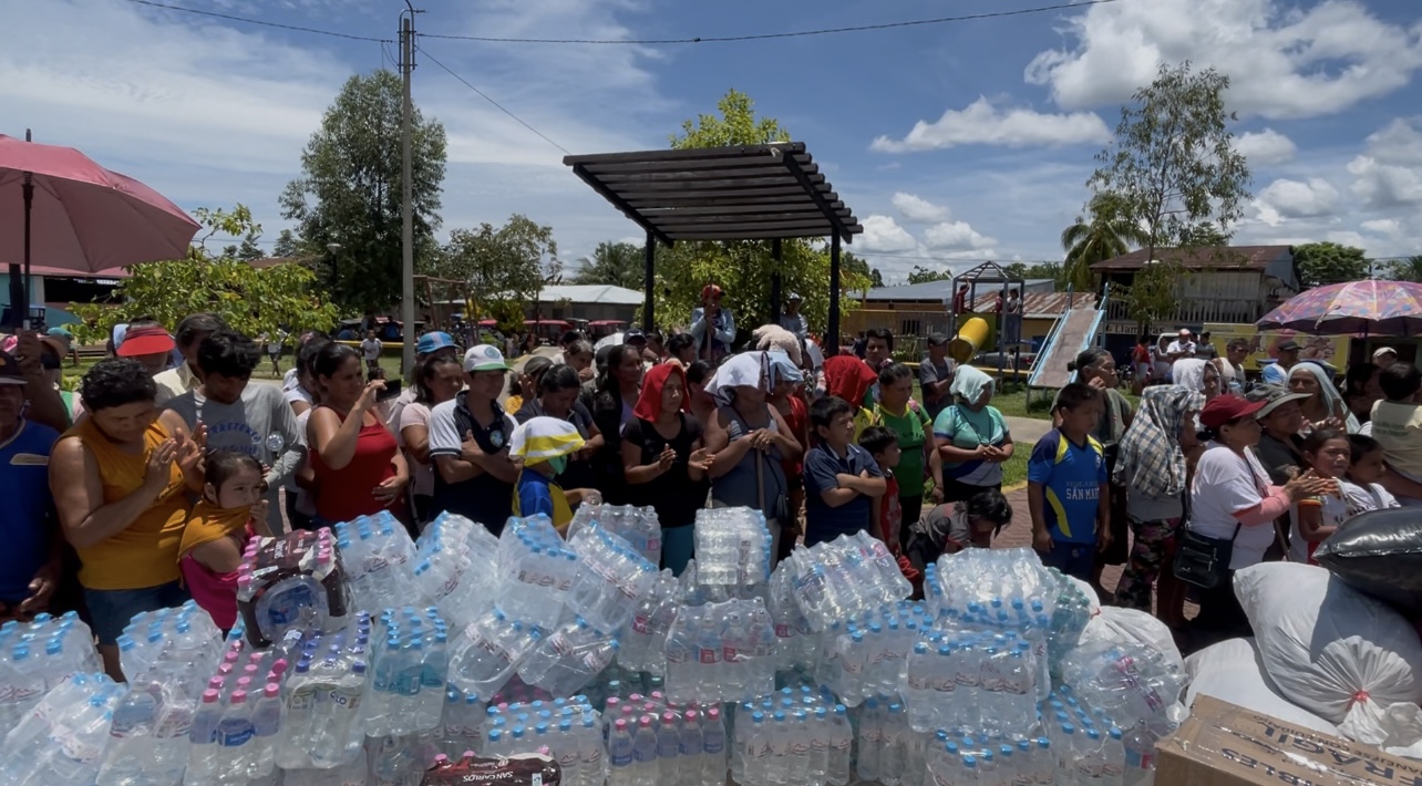 Tres toneladas de víveres (arroz, azúcar, frejol, conservas y fideos), 200 sacos de ropa y 50 paquetes de agua, llevó el martes 18, la alcaldesa provincial Lluni Perea a la zona del Bajo Huallaga.