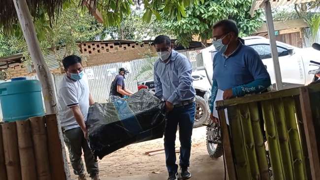 El alcalde de La Banda de Shilcayo, José Del Águila, llegó hasta el domicilio de los menores en el sector el Edén, donde ahora viven junto a su abuelita materna, para hacerle entrega de ayuda.