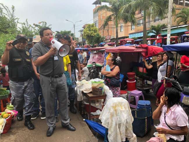 El viernes a las 11 y 59 de la noche, culmina la sensibilización a los comerciantes ambulantes que se posesionaron de las veredas del jirón Tahuantinsuyo, siendo los exteriores del Mercado Privado “El Huequito”, donde se concentran la mayoría de vendedores.