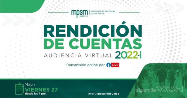 El señor alcalde de la MUNICIPALIDAD PROVINCIAL DE SAN MARTÍN, viene haciendo de conocimiento de la población la realización de la Audiencia Virtual 2022 I de RENDICIÓN DE CUENTAS para este viernes 27 mayo a partir de las 7:00 de la noche.