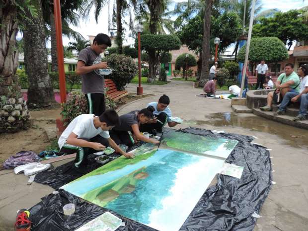 Tarapoto. Ayer, 20 de abril, el parque Suchiche se ha llenado de color gracias a las Instituciones Educativas Ofelia Velásquez, Tarapoto y Francisco Izquierdo Ríos, se realizó como actividad previa al VIII Foro Panamazónico, un concurso de murales.