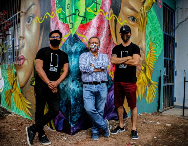 Diego Capuena y Frank Machucha, son los autores Ad honorem, de este mural que expresa cultura y espíritu de conservación en las esquinas de los jirones, Pedro Canga con Serafín Filomeno. Cabe mencionar, que desde la DDC se hicieron las gestiones necesarias para recolectar material de muy buena calidad y asegurar la durabilidad de estas obras y así garantizar que Moyobamba reciba el bicentenario de la mejor forma posible.