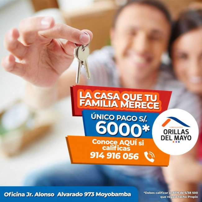 A todas las familias interesadas, en cumplir su gran sueño de TENER SU CASA PROPIA deben comunicarse al 916 914 056, escribirnos a nuestras redes sociales ORILLAS DEL MAYO o visitarnos en nuestra oficina Jr. Alonso Alvarado 973 Moyobamba.