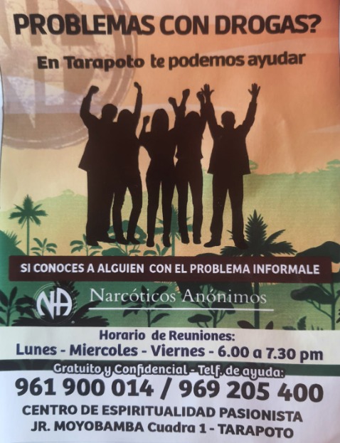Para mayor información acerca de Narcóticos Anónimos, en: www.naregionperu.org o los teléfonos de ayuda en Tarapoto son 961 900 014 / 969 205 400 las 24 horas, y en su local Ubicado en el CENTRO DE ESPIRITUALIDAD PASIONSTA ubicado en el Jr. Moyobamba Cuadra 1 – TARAPOTO.