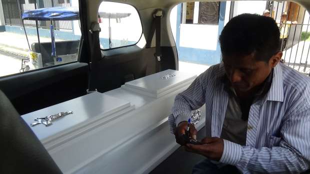 Por disposición del fiscal de Lamas, el cuerpo del niño fue conducido a la morgue del distrito de Morales para la necropsia de ley, donde se confirmó que murió a consecuencia de asfixia mecánica con la correa. El cuerpo del niño será sepultado este lunes en la localidad de Morillo cuya población se encuentra consternada con este hecho. (Hugo Anteparra)