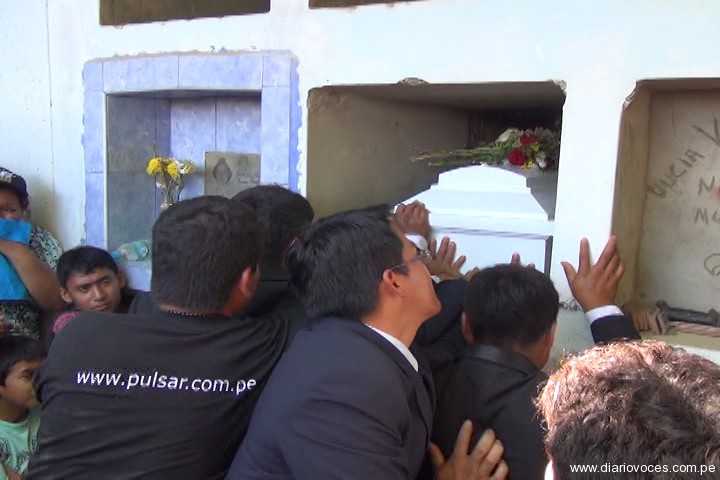 A las 10 y 30 de la mañana, los restos mortales del niño fueron sepultados en medio de conmovedoras escenas de dolor, sus padres agradecieron las muestras de cariño que recibieron durante el velatorio. (Hugo Anteparra)