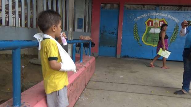 Un alumno del primer grado de primaria de la Institución Educativa Miguel Chuquisengo Ramírez de Tarapoto, se fracturó el brazo derecho al caer desde un puente provisional colocado en una zanja frente a esa escuela, donde a diario los niños corren peligro de sufrir cualquier accidente cuando ingresan y se retiran de clases.