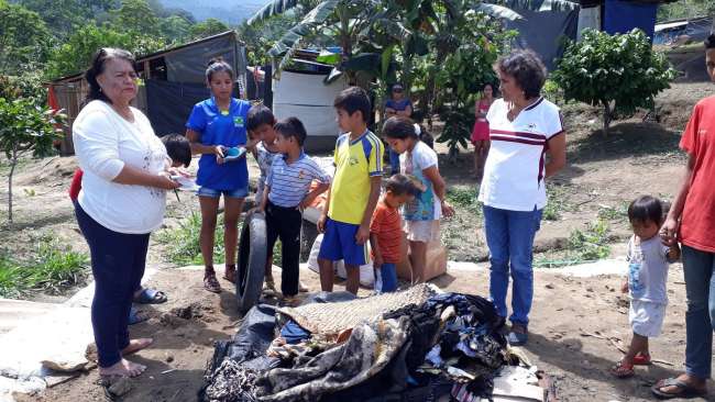 La madre del niño está hospitalizada en Lima por problemas al corazón, el menor de nombre Cristopher resultó con algunas heridas, pero hasta el momento no supera el mal momento que pasó la noche del jueves, cuando se olvidó de apagar la vela que lo alumbraba. Las integrantes de Manos Unidas ayer le llevaron apoyo.