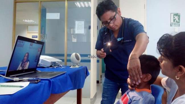 En la víspera en las instalaciones del Hospital II-E de Lamas se realizó la Teleconsulta (atención virtual) desde Lamas con la atención del Médico Cirujano Edson Gonzales Arce y desde Lima de la Oftalmopediatra Ammy Guevara Díaz, médico especialista del Instituto Nacional de Oftalmología, quien fue el que estableció el diagnóstico definitivo del niño de las iniciales G.T.V. (de 9 años de edad, procedente del Caserío de Pachilla-Lamas) y manifestó que el infante requiere una operación especializada.