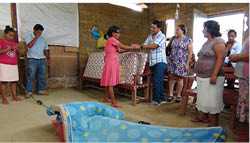 Los empresarios entregaron colchones y alimentos a Rosa Panduro Saurin, responsable de la iglesia evangélica, quien agradeció el noble gesto de los esposos, que además donaron dinero a la madre del niño, para que compre vitaminas, ya que Dany necesita alimentación para recuperarse.