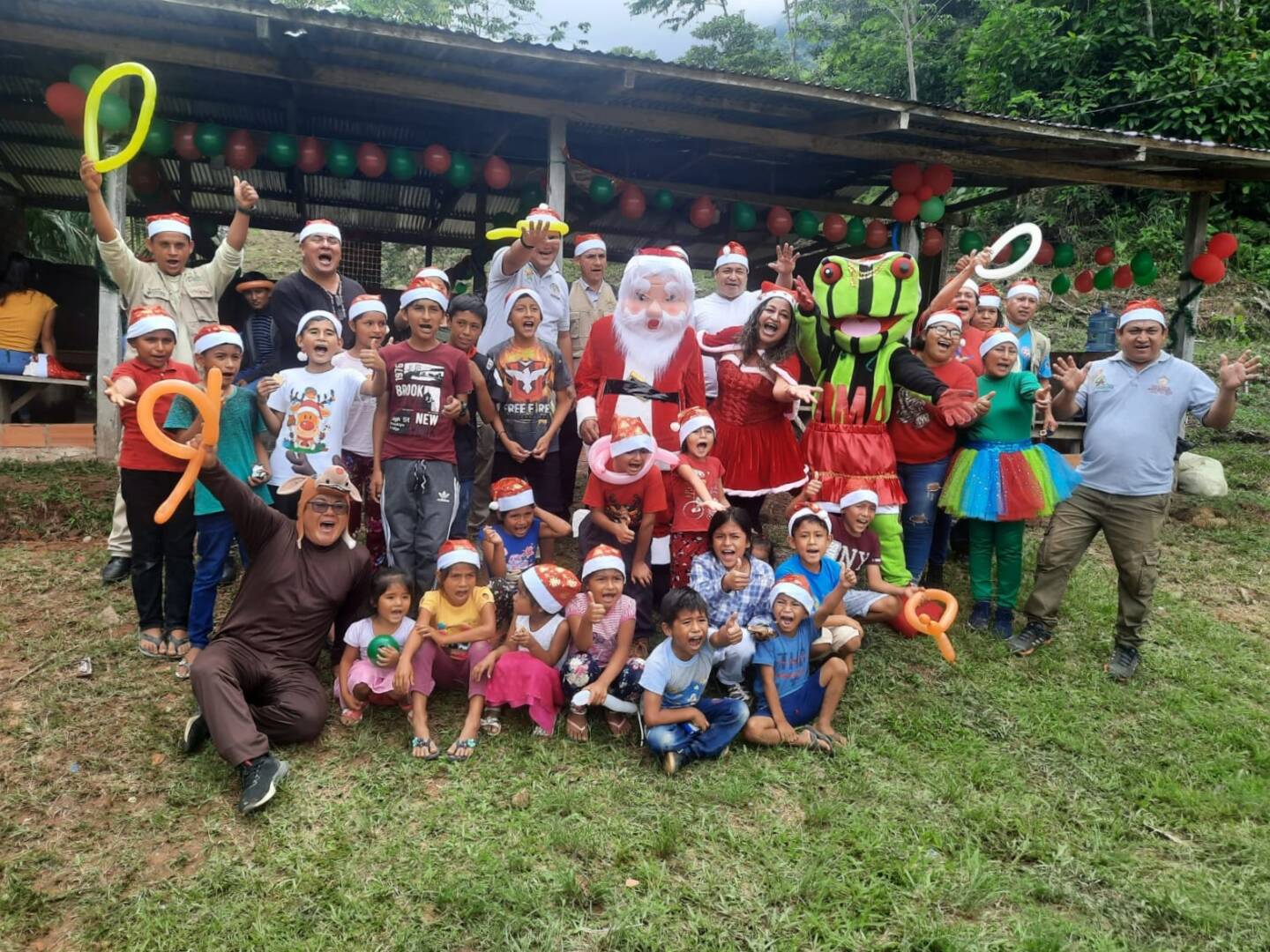 La actividad que se realizó el día martes 18 de diciembre como parte de la labor social del PEHCBM orientada a los niños de los centros poblados ubicados en el ámbito de la región San Martín, congregó a los menores – en compañía de sus padres y familiares del centro poblado ubicado en el kilómetro 30 de la carretera Tarapoto – Yurimaguas, donde la alegría navideña fue complementada con regalos y presentes donados gracias a las coordinaciones desarrolladas por la directora de la DMA Leydy Torres Mendoza con los proyectos que ejecuta esta dirección (ACR Cordillera Escalera y 24 Concesiones) y donantes voluntarios que una vez más demostraron su emoción social hacia las poblaciones más necesitadas.