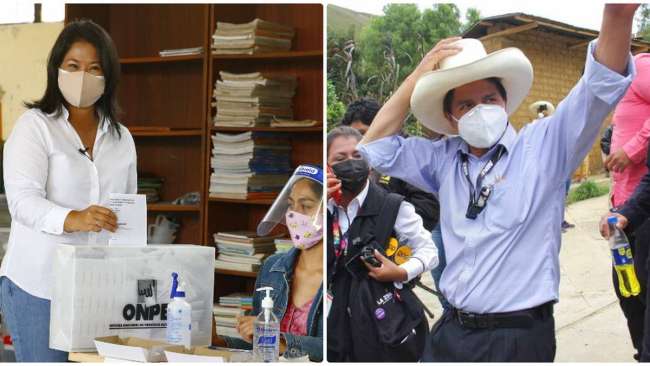 – En la primera vuelta de las elecciones de 2021, hubo 24 millones 520 mil 719 electores hábiles. Pedro Castillo ganó la primera vuelta con 2 millones 689 mil 804 votos, el 10,9% de los electores del país. En segundo lugar, Keiko Fujimori obtuvo 1 millón 885 mil 666 votos, el 7,6% de los electores. En conjunto tuvieron el 18,5% de los electores hábiles del país.