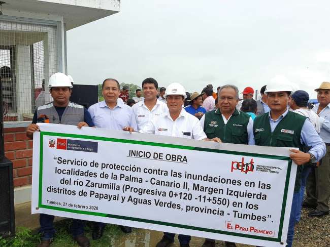 El Ministerio de Agricultura y Riego a través del Proyecto Especial Binacional Puyango Tumbes (PEBPT), dio inicio a la obra de protección contra inundaciones en las localidades de La Palma – Canario II, de la margen izquierda del río Zarumilla, beneficiando a más de 6 mil pobladores de los sectores.
