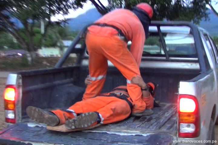 El herido fue identificado como Eradio Sembrera Manchay de 38 años de edad quien al momento del accidente estuvo con su indumentaria de seguridad, sus compañeros de trabajo hicieron denodados esfuerzos para sacarle de encima el panel, tras ser liberado fue conducido a la clínica en la tolva de una camioneta doble cambia.