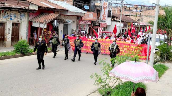 Los manifestantes partieron desde el Óvalo del Soldado en el distrito de Morales hacia la ciudad universitaria, luego a la sede del Subregión Bajo Mayo del Gobierno Regional de San Martín y desde allí se dirigieron a la sede de La Superintendencia Nacional de Fiscalización Laboral (Sunafil) para exigir el cambio de uno de sus funcionarios.