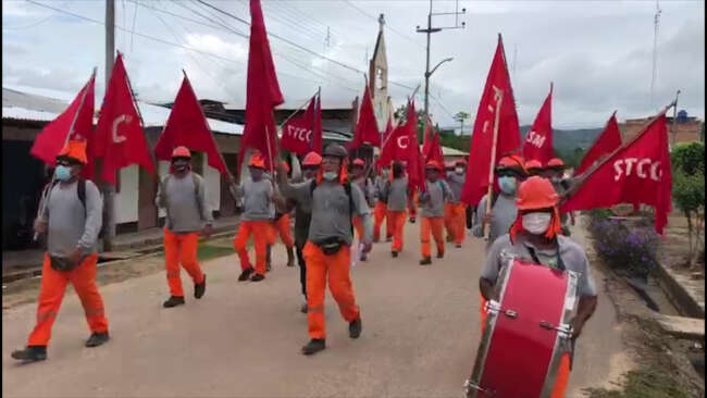 Los sindicalistas, recorrieron las principales calles del distrito porque hasta la fecha la empresa contratista AZELCAR no cumple en cancelarles sus salarios.