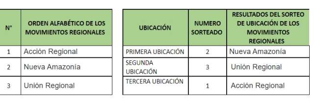 Fueron considerados en el sorteo todos los Movimientos Regionales con inscripción vigente y que han presentado lista de candidatos ante el Jurado Nacional de Elecciones para los comicios de octubre.