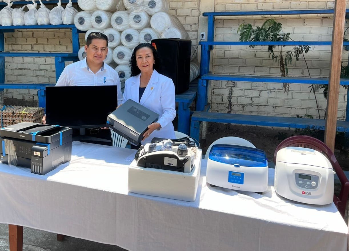 La mañana del viernes 2 de agosto, la OGESS-Bajo Mayo hizo entrega de equipos biomédicos, de cómputo e impresoras a diferentes Establecimientos de Salud de la Red de Salud de Lamas, Picota, El Dorado y San Martín, que serán destinados a fortalecer los servicios de farmacia y laboratorio, informó en la ceremonia de entrega la obstetra Gladis Sofía Rodríguez Aspajo, directora de la OGESS.