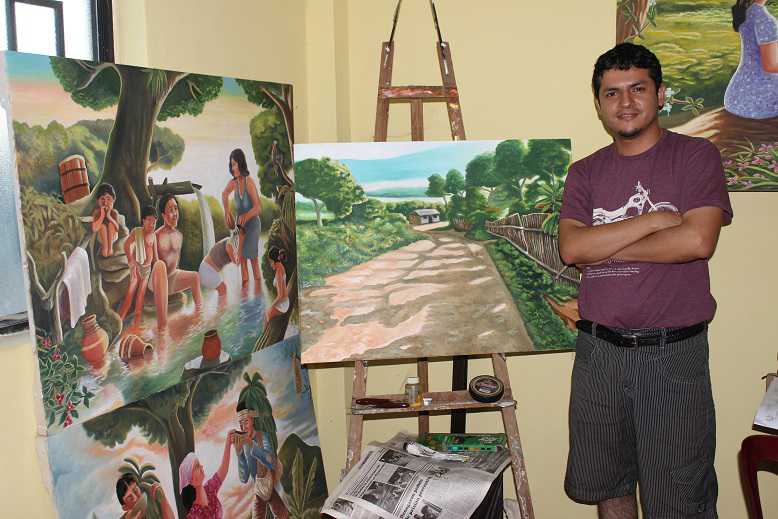 También se puede ver y sentir en los cuadros de José Ángel, las costumbres arraigadas de Moyobamba; chacareros cargando un racimo de plátano verde, otros con la alforja al hombro y la pretina sujetando el machete, tomando de un pate de wingo, la deliciosa chica de higo, sedientos por el recorrido realizado hasta las chacras.