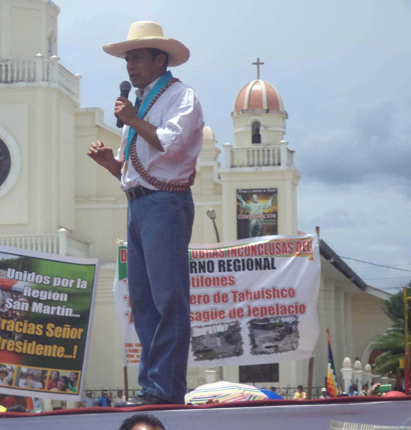 Mardonio Del Castillo; el alcalde moyobambino centró su discurso en la petición de obras para esta ciudad como la remodelación de la comisaría del sector Uchuglla, que ya tiene código SNIP, presupuesto, pero que no se ejecuta hace aproximadamente 4 años.