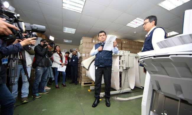 Al inicio del proceso de impresión asistieron representantes del Jurado Nacional de Elecciones, quienes pueden fiscalizar el proceso en cualquier momento y por el tiempo que consideren pertinente.