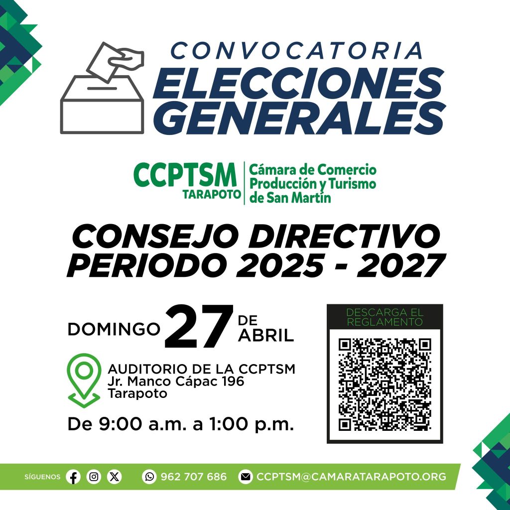 La Cámara de Comercio Producción y Turismo de San Martìn ha logrado constituirse como uno de los gremios empresariales más respetados en la región y con entidades públicas y privadas nacionales e internacionales. Se exhorta por ello, a los candidatos y candidatas, respetar la institucionalidad y las reglas del proceso tal y cual se ha venido cumpliendo en las últimas elecciones.