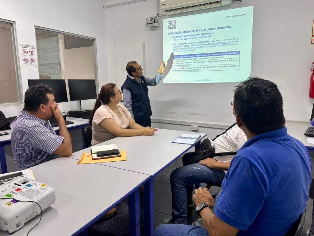 La reunión estuvo dirigida por el gestor de la ORC Tarapoto, Percy Tapia Saucedo, con el apoyo del profesional de asistencia técnica de la Gerencia de Supervisión de Fondos Partidarios. Durante la sesión se analizaron y difundieron las reglas incorporadas por la Ley N.° 32462 para las elecciones primarias de las Elecciones Regionales y Municipales (ERM) 2026, poniendo especial énfasis en la actualización, modificación y complementación de la normativa interna de las organizaciones políticas.