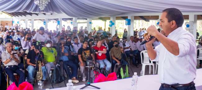 En su alocución, Oscar Cabrera Candidato a la Gobernación Regional, hizo una exposición geoestratégica del desarrollo regional, proponiendo la integración interregional con Amazonas; uniendo la carretera Soritor – Rodríguez de Mendoza, asimismo, la construcción del Puente Pongo Isla sobre el rio Huallaga, facilitando la integración con el Valle del Ucayali y por el sur de la región con la Libertad, con la culminación de la carretera Shunte – Metal Marcos – Pataz. Asimismo, se refirió que gestionará la puesta en funcionamiento del Aeropuerto de Rioja, como también, el Aeropuerto Policial de Santa Lucía que pase a ser de uso civil y comercial contribuyendo así, a reactivar la economía de Tocache y de toda la región. Siguiendo con las propuestas de la integración de la región, dijo que se invertirá 100millones de soles en el mantenimiento inmediato de los 681 km. de las pistas asfaltadas las que están en franco deterioro.