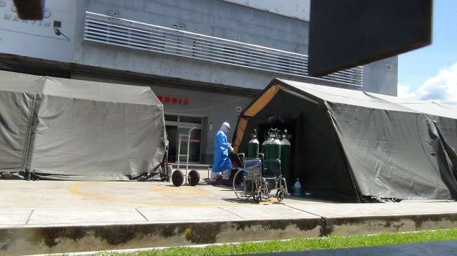 La situación en el Hospital II – 2 de Tarapoto también preocupa al personal de Salud, actualmente existen 36 pacientes hospitalizados con covid, en las carpas están doce personas que reciben tratamiento.