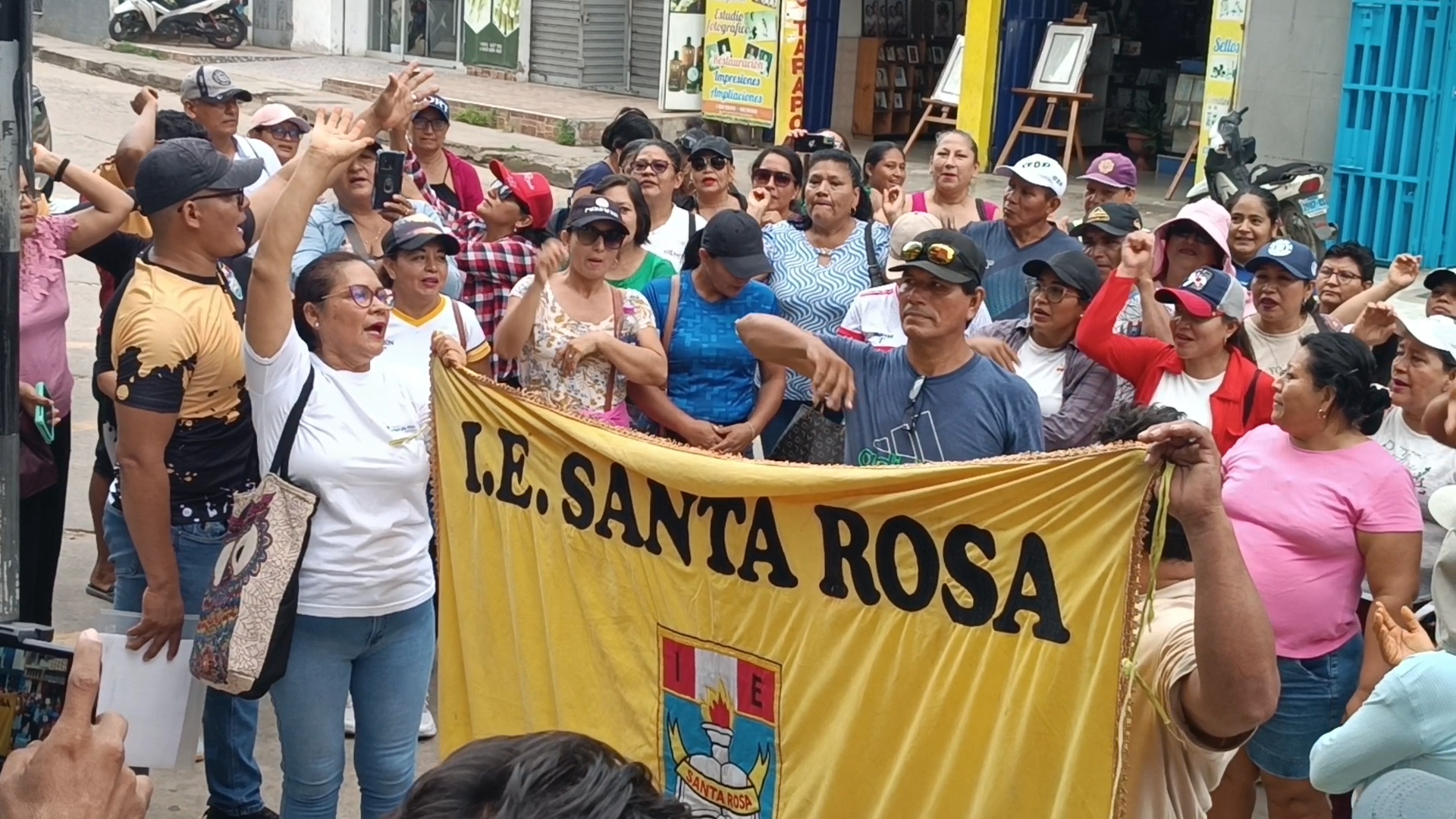 Un grupo de padres de familia de la Institución Educativa Santa Rosa de Tarapoto se congregó frente a la Municipalidad Provincial de San Martín para exigir una explicación sobre el pago por el alquiler de una parte del minicoliseo Santa Rosa para que funcione la Biblioteca Municipal.