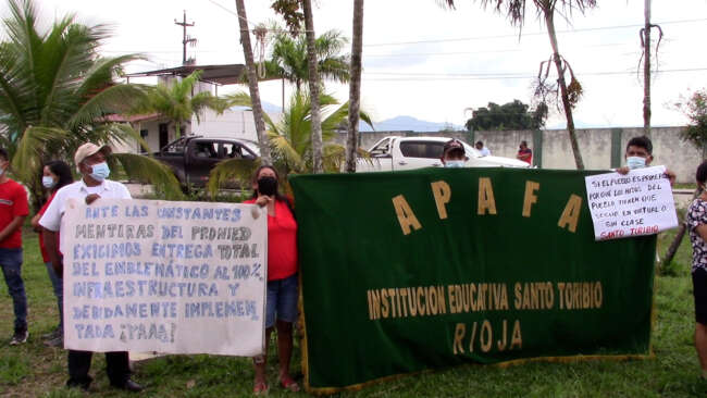 Padres de familia y director de la Institución Educativa Santo Toribio de Rioja se acercaron hasta las instalaciones del centro de empleo de la Dirección Regional de Trabajo porque sabían que al lugar llegaría la ministra de trabajo y congresistas por San Martín para participar de un evento. Los padres de familia aprovecharon la presencia de la ministra para entregarle un memorial con documentación dirigido al Presiente de la República y el ministro de Educación para que aceleren el término de la infraestructura educativa que ya va a cumplir 7 años y hasta la fecha no ha sido concluida siendo los estudiantes son los más perjudicados así manifestó el Profesor Pedro Alarico Apaza director de la Institución Educativa.