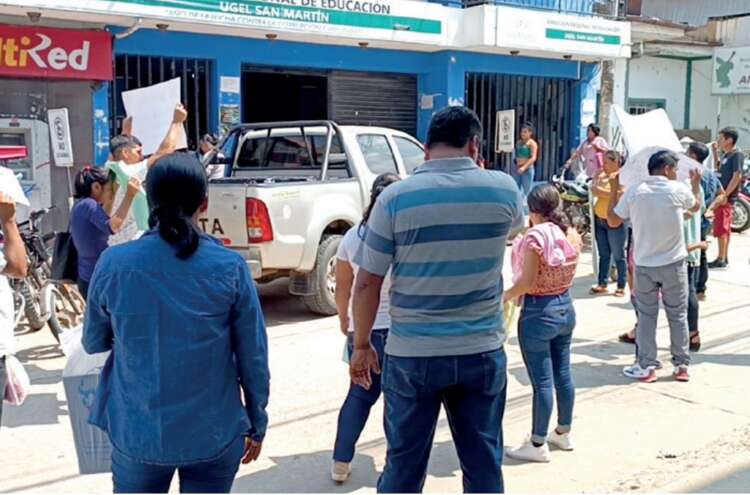 Padres de familia de instituciones educativas del distrito de San Antonio de Cumbaza y del barrio Atumpampa de Tarapoto, llegaron hasta la sede de la Unidad de Gestión Educativa Local de San Martín, para protestar exigiendo docentes para sus hijos, ya que a pesar que hace una semana se inició el año escolar, carecen de profesores.