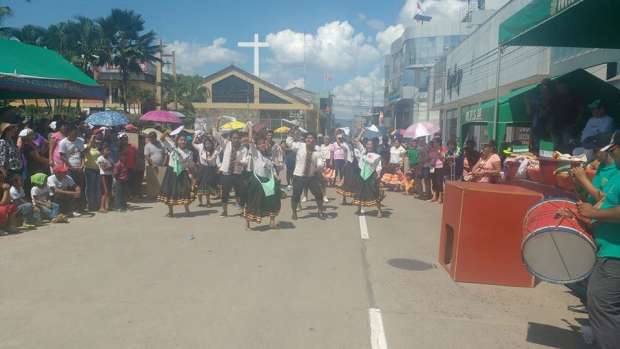 En Tarapoto, el grupo de danzas que fue contratado por la municipalidad, bailaron con pañuelos, al ritmo del Chimaychi.