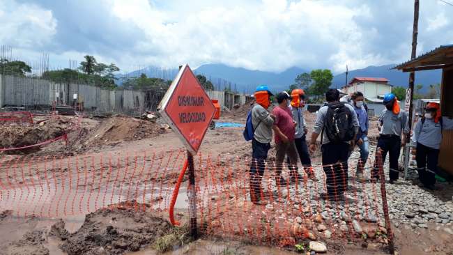Henry Mena Salazar, secretario general del Sindicato de Construcción Civil llegó a la obra para respaldar a los obreros, quienes manifiestan que también paralizaron sus labores, porque la empresa ejecutora estaría trayendo mano de obra desde Lima, sin que ellos pasen por la prueba Covid.