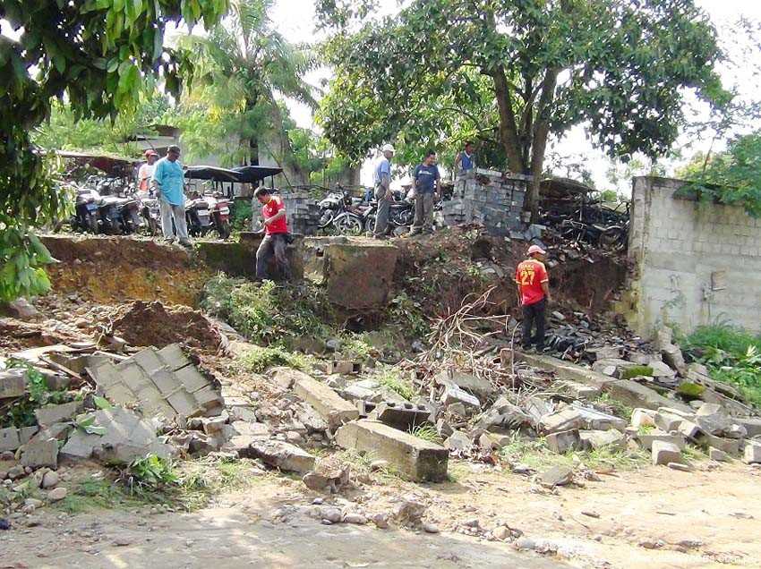 Una parte del cerco perimétrico del Canchón Municipal de Tarapoto se vino abajo durante la torrencial lluvia, los trabajadores municipales desde muy temprano limpiaron la parte afectada, a fin de retirar los escombros, se conoció que la pared tiene más de 20 años de antigüedad.