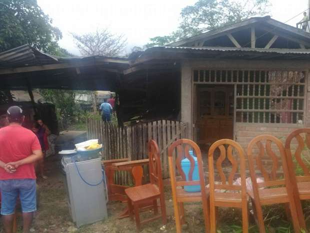 Juanjui. Luego de la lluvia, un paredón de concreto se desplomó, cayendo sobre una vivienda; los propietarios por suerte lograron salir vivos. La casa deteriorada es de Johny Neira Chinchay, padre de 4 niños, su hermana salió herida con un corte en la cabeza y conducida al hospital del Ministerio de Salud Minsa de Juanjuí, el hecho sucedió a las 11:50 am del martes 22 del presente, la vivienda está ubicada a la salida de Juanjuicillo.