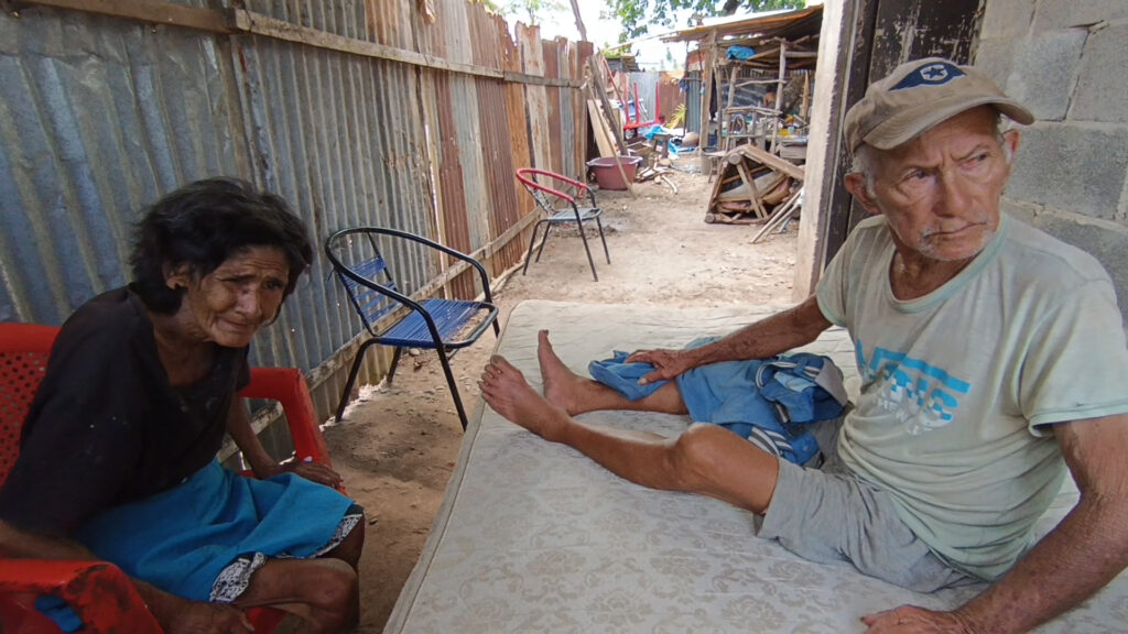 Gudberto del Águila Flores y Elsa Torres Paredes, una pareja de adultos mayores, viven desde hace cinco años en condiciones de extrema indigencia en el distrito de Juan Guerra. Ambos fueron beneficiados en su momento por la municipalidad distrital, durante la gestión del alcalde Víctor Flores Paredes les otorgó en sesión de uso un terreno municipal para que pudieran construir una pequeña vivienda rústica y contar con un lugar donde vivir junto a otras personas de escasos recursos económicos.
