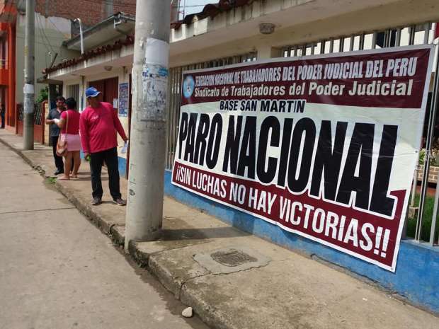 En Tarapoto los Trabajadores del Poder Judicial también acatan el paro de 72 horas, exigiendo al gobierno central la anulación de la ley Servil, mejoras y beneficios salariales, contratos definitivos del personal que cada mes tienen que firmar contratos de trabajo. Las audiencias programas en los juzgados fueron suspendidos hasta que culmine la medida de fuerza.