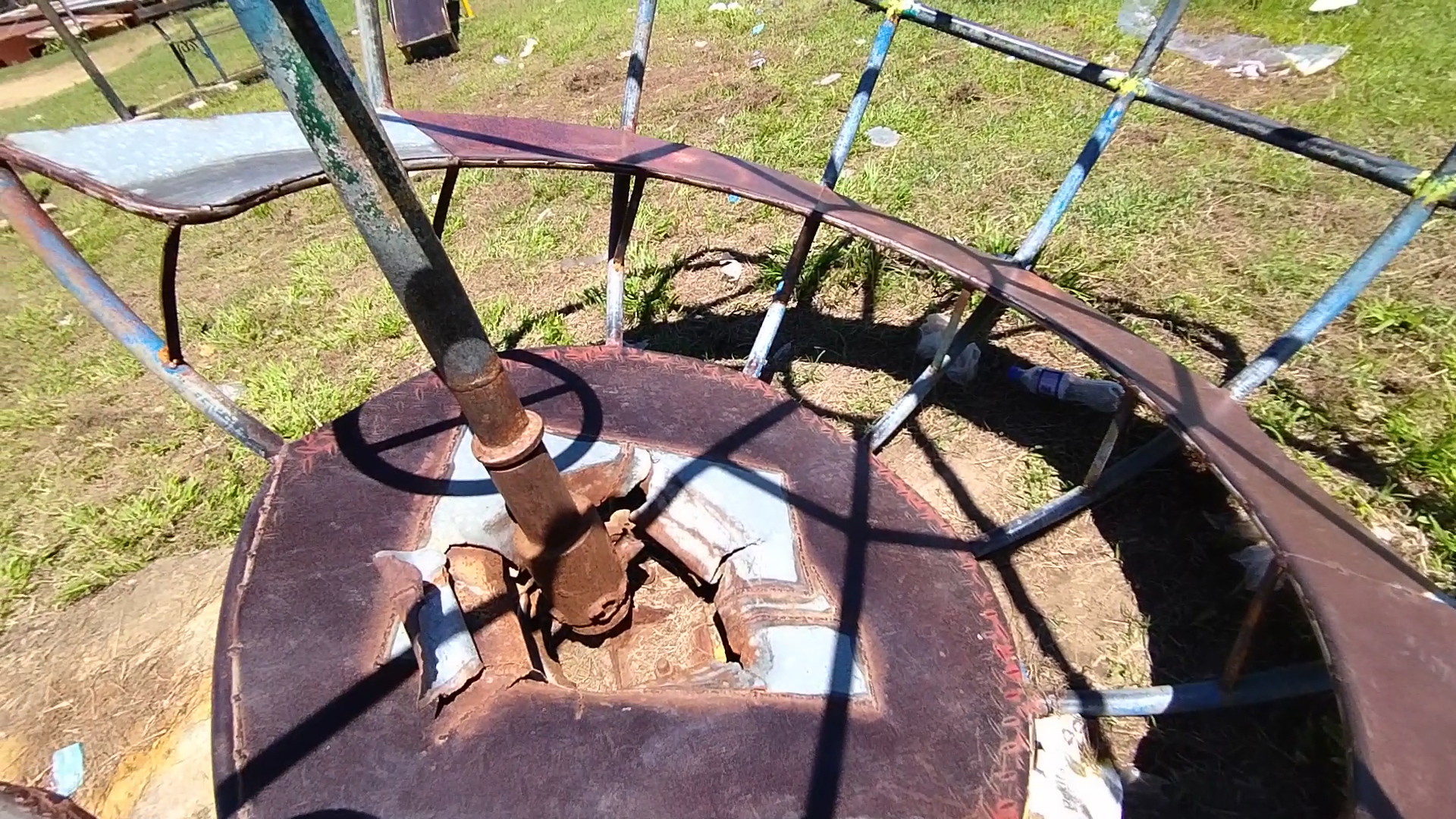 Entre los juegos más peligrosos se encuentra un giratorio cuyos latones están levantados, oxidados y corroídos, lo que podría causar lesiones serias o incluso infecciones como el tétano. Asimismo, el sube y baja presenta un estado similar, con estructuras metálicas deterioradas y expuestas al uso diario de los niños.