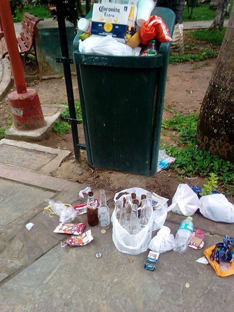 Solo ayer por la mañana Ernestina Mori recogió más de cien botellas de cerveza de diferentes marcas, y cerca de 50 latas, sin embargo para ella no es nada raro encontrar envoltorios de marihuana, es por ello que recomienda a los serenos y policías a evitar que el parque sea un lugar de consumo de drogas y alcohol.