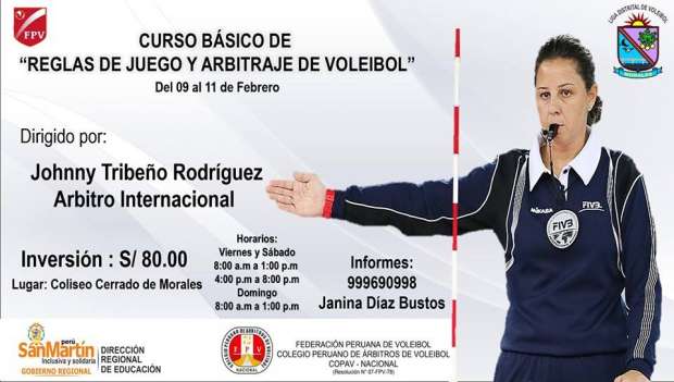 Del 09 al 11 de febrero se realizará el “Primer Curso Básico de Reglas de Juego y Arbitraje de Voleibol” es un curso organizado por la liga de Voleibol de Morales, DRE San Martin, y oficializado por la FPV para contar con más árbitros colegiados y se les pueda promocionar hasta llegar a árbitros internacionales, terminado el curso todos los que participaron serán aspirantes a árbitros nacionales y podrán colegiarse para que puedan participar de todos los torneos oficiales de la Federación, dirigido al público en general, (profesionales, profesores de Educación Física, entrenadores, estudiantes)