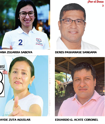 LEONARDO INGA SALES (Acción Popular), FERNANDO MELENDEZ CELIS (Alianza Para el Progreso), EDUARDO GEOVANNE ACATE CORONEL (Alianza Para el Progreso), ANA ZADITH ZEGARRA SABOYA (Somos Perú), DENIS PASHANASE SANGAMA (Frente Amplio), y AYDÉ ZUTA AGUILAR (Todos Por el Perú). (Roger Torres)