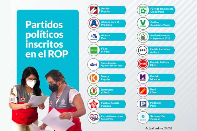A Julio del 2023, son 23 partidos políticos cuentan con inscripción vigente en el Registro de Organizaciones Políticas (ROP) del Jurado Nacional de Elecciones (JNE). Conoce de qué agrupaciones se trata.