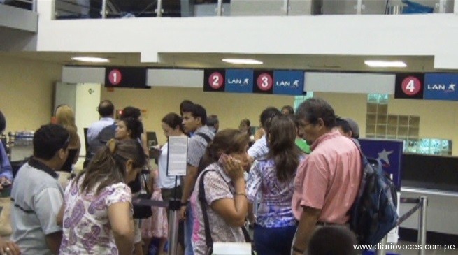 Pasado las once de la noche del sábado, los pasajeros no tuvieron otra alternativa que retirarse disgustados del terminal aéreo y recién el domingo a las dos de la tarde lograron viajar a Lima. (Hugo Anteparra)