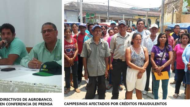Yurimaguas. El gerente comercial, Fernando Luna Victoria, y el gerente legal, Diego Ferré, del Banco Agropecuario (Agrobanco), informaron ayer en conferencia de prensa ofrecida en Yurimaguas, que el otorgamiento de créditos irregulares y fraudulentos en la oficina de Yurimaguas, supera los 4 millones de soles, con un aproximado de 200 campesinos afectados.