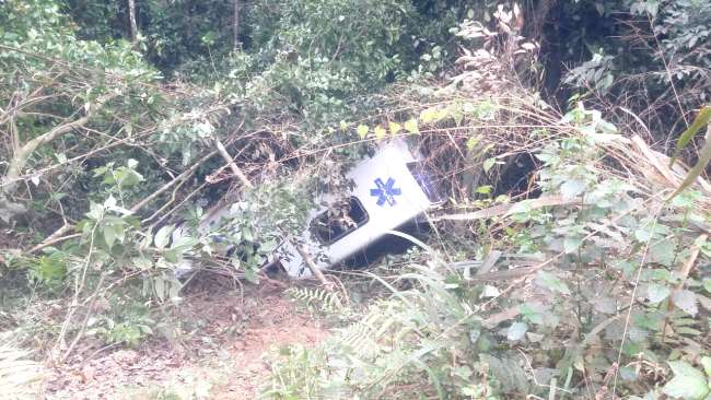 La ambulancia del centro de Salud del distrito de Sauce, se despistó ayer por la mañana en momentos que regresaba de dejar una paciente en el Hospital II – 2 de Tarapoto. El conductor, la enfermera y una obstetra resultaron ilesos, a pesar que el vehículo fue a parar a más de 20 metros de profundidad de un barranco cerca del sector Shapumbal.