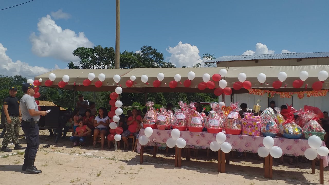 Para realizar esa actividad y para la compra de canasta de víveres contaron con el apoyo de los efectivos policiales que trabajan en esa dependencia, así como también con donaciones de algunos empresarios de esa provincia y de esta manera brindaron un momento de alegría a las madres de ese centro poblado que celebraron su día con una actividad a cargo de los miembros de las fuerzas del orden.